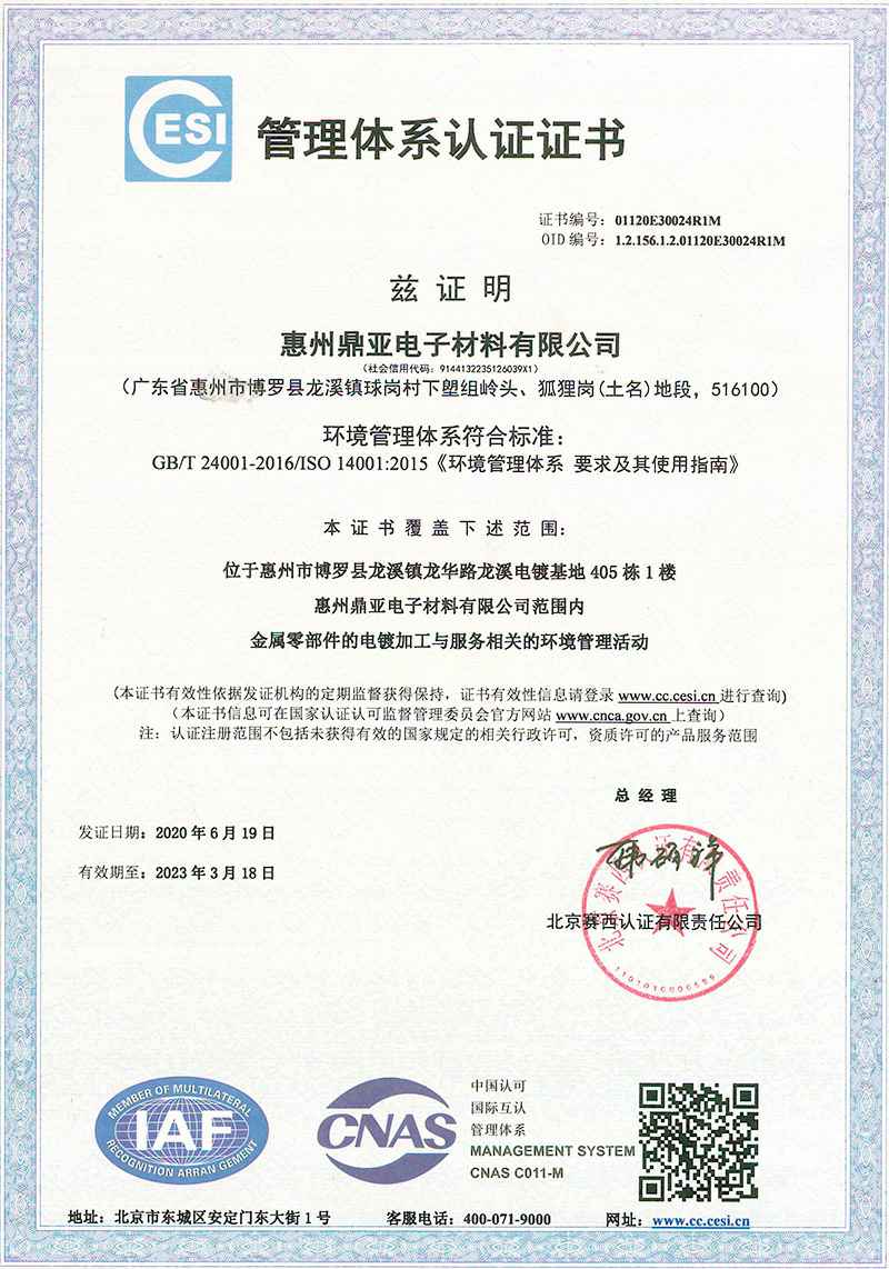 惠州管理体系认证证书